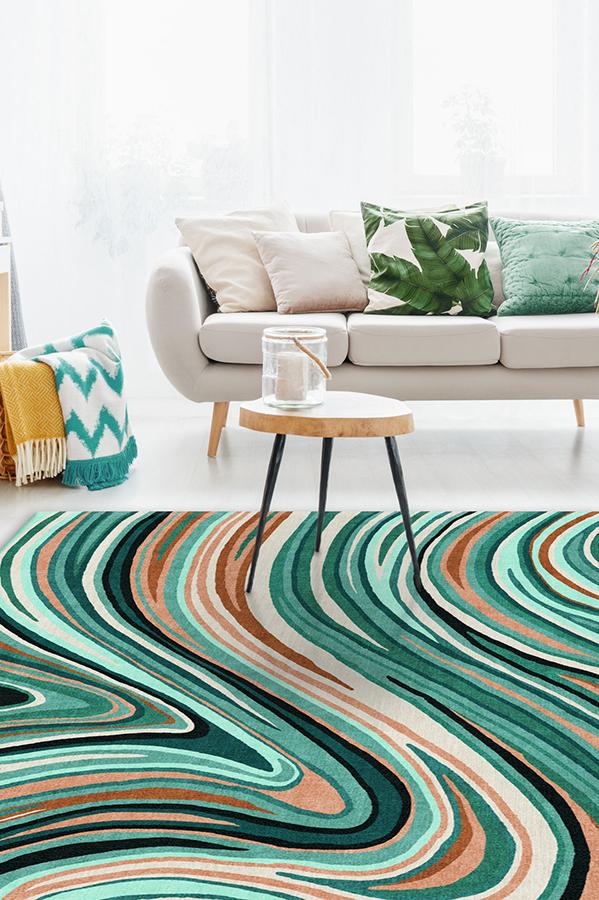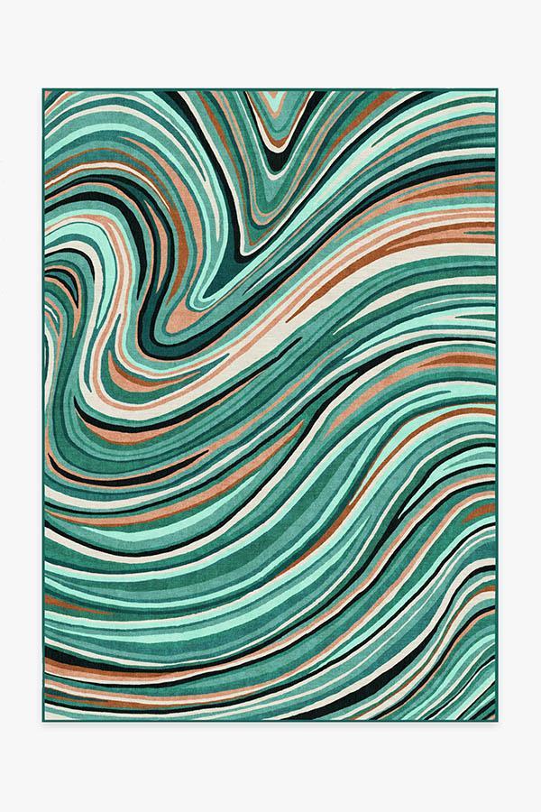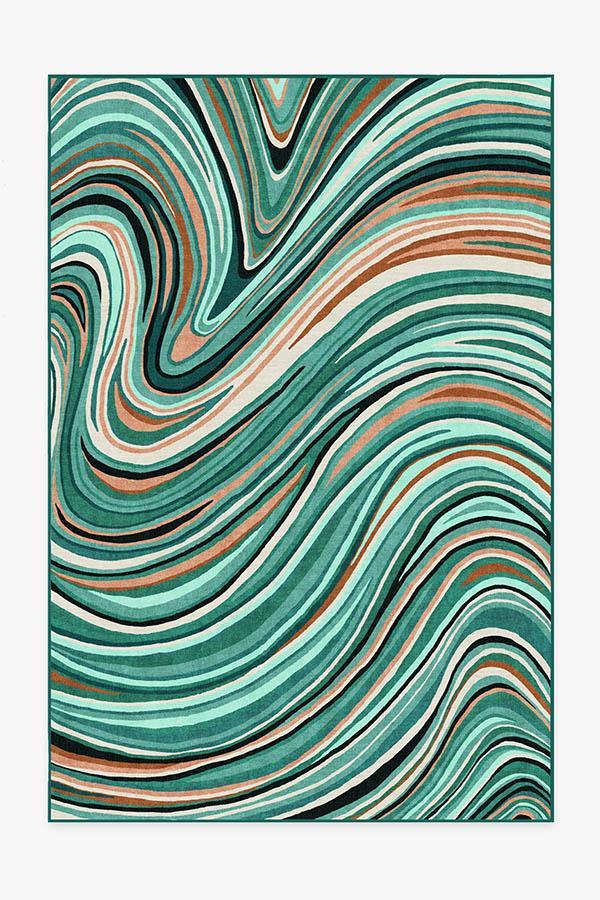Lux and luminous, our Agate Turquoise rug will make a dazzling decor statement in any space of your home. The fine and graceful lines of this quartz gemstone-inspired motif is displayed in brilliant hues of turquoise, teal, dark rosegold and terracotta. Elevate your modern, contemporary or coastal style home with a decorative touch of nature's beauty.
