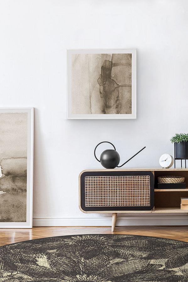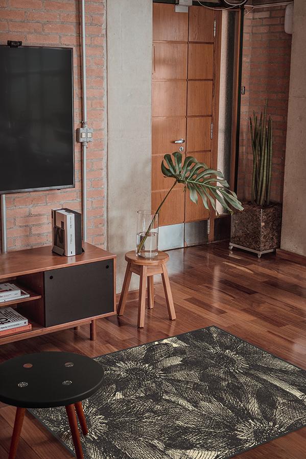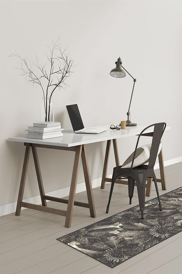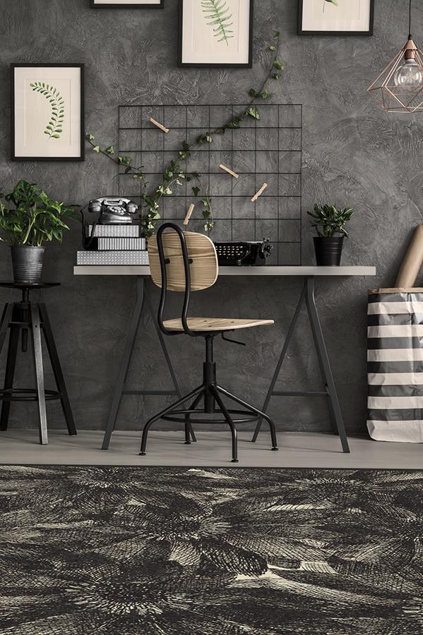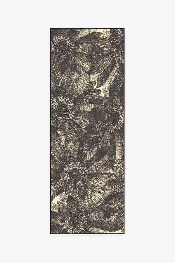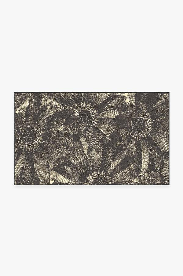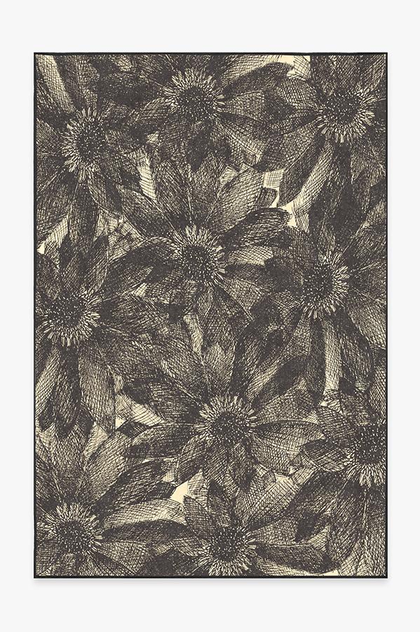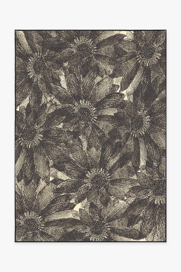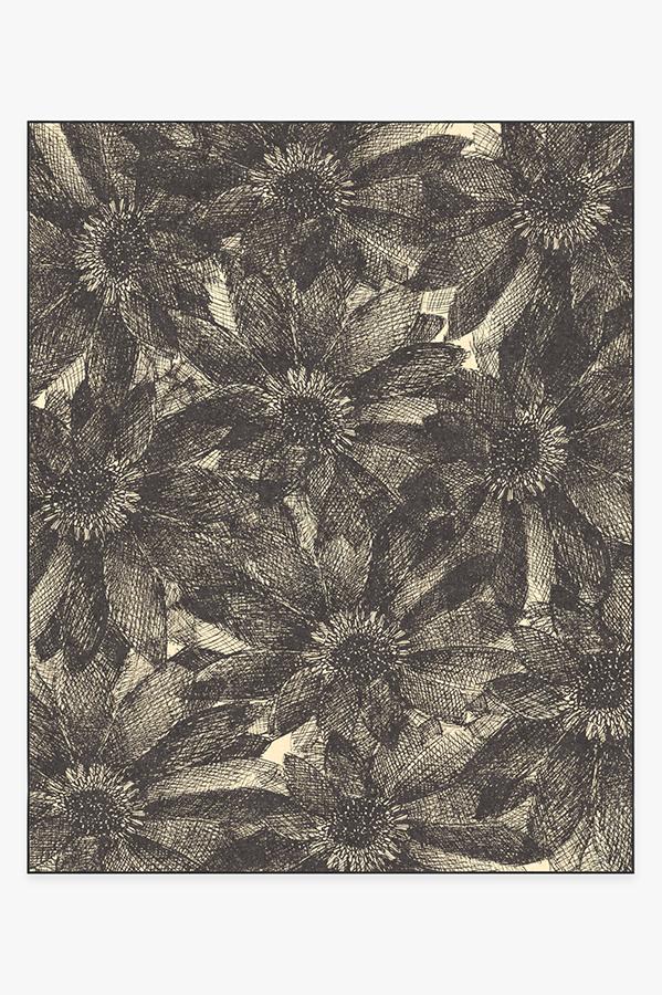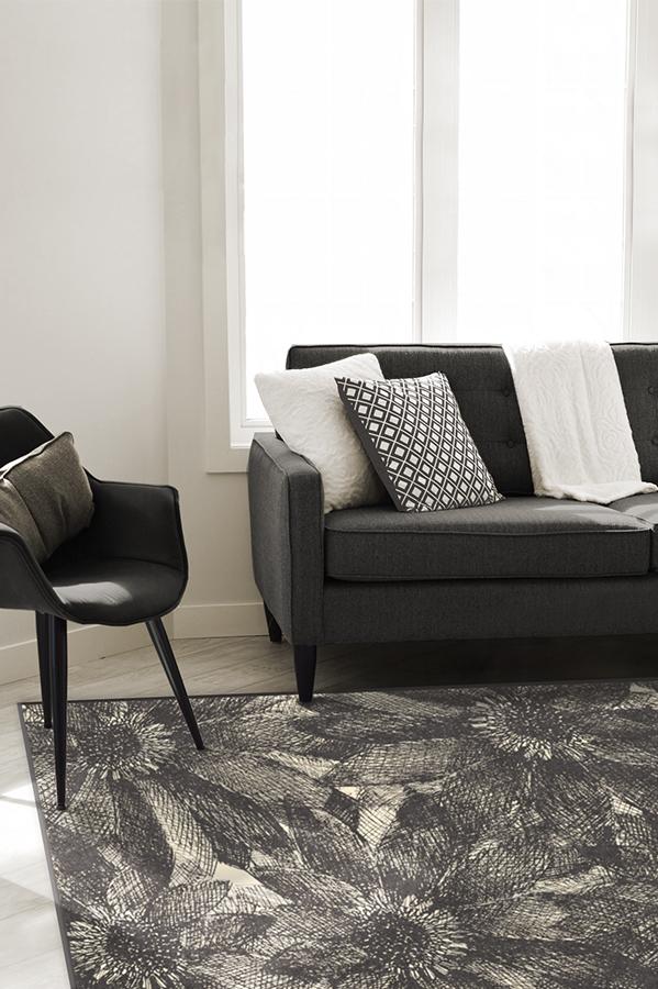 The crosshatching design of our floral Aprilios Charcoal rug creates a tonal and textural effect in an earthy palette of grey and natural linen.