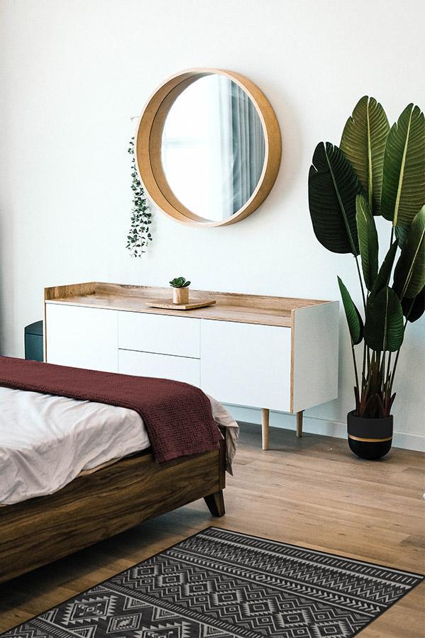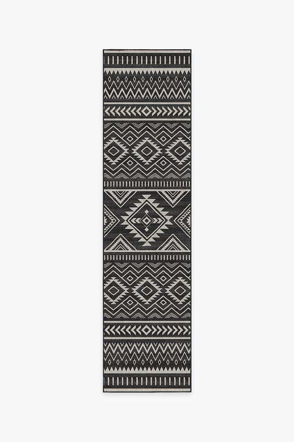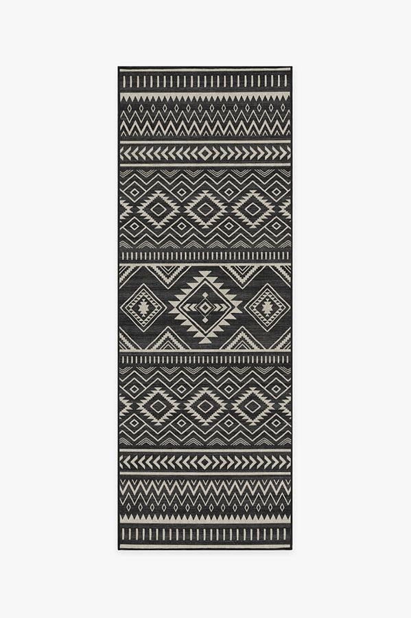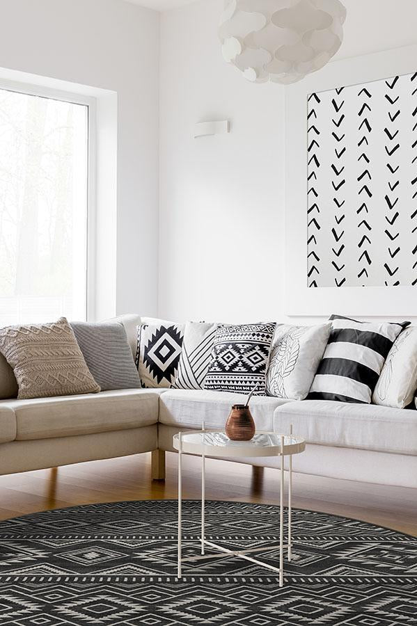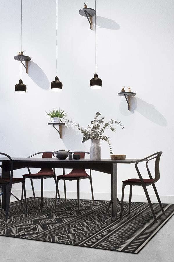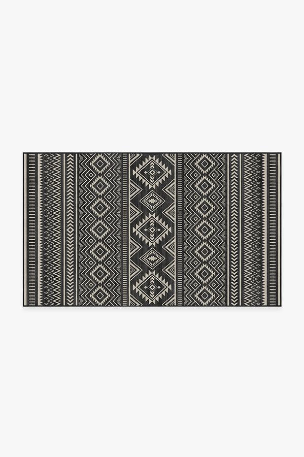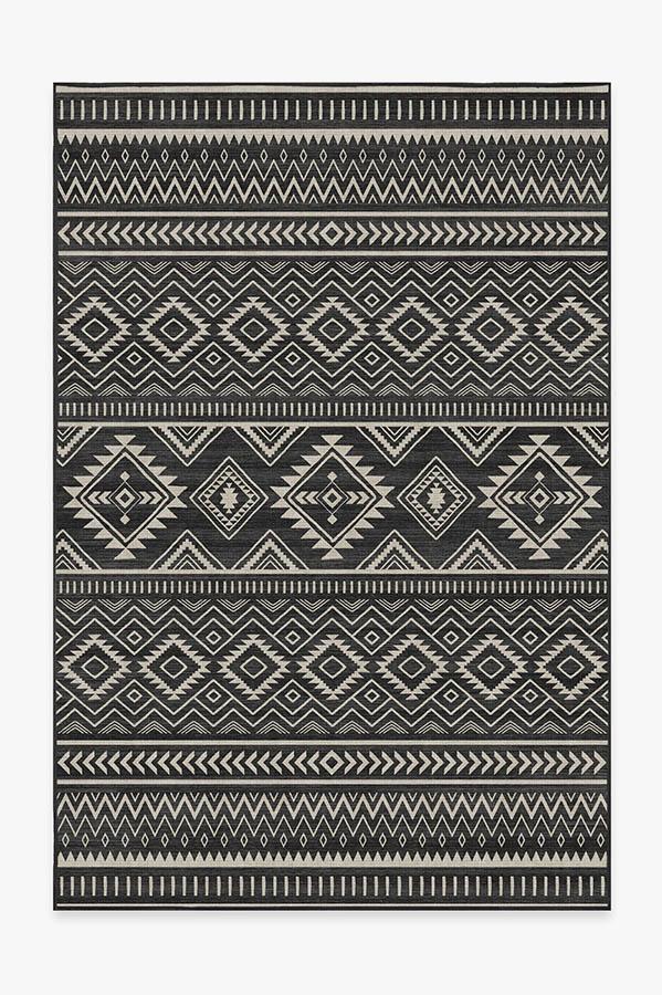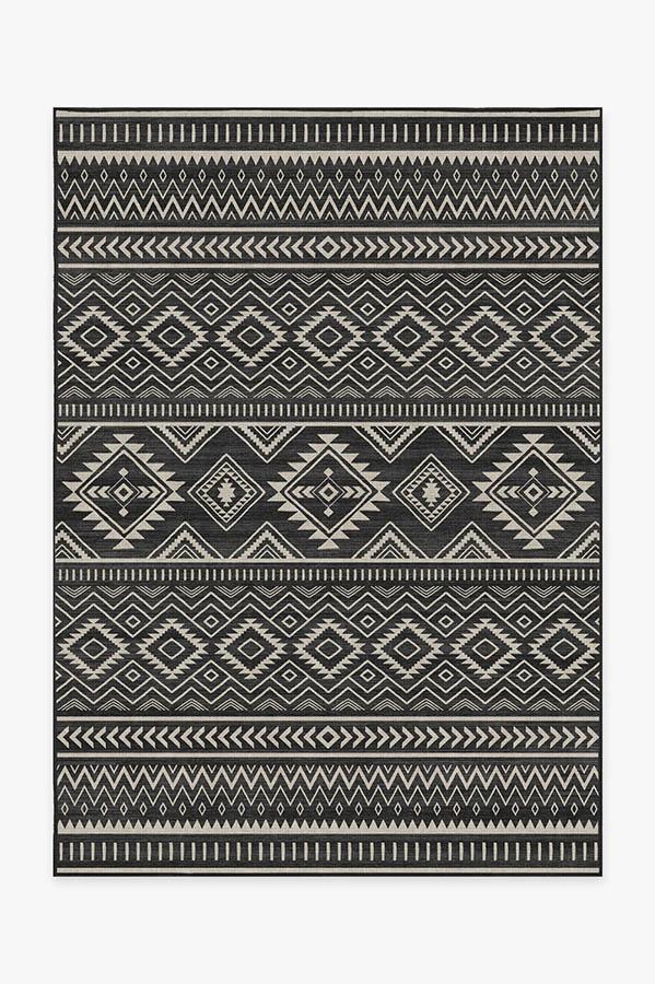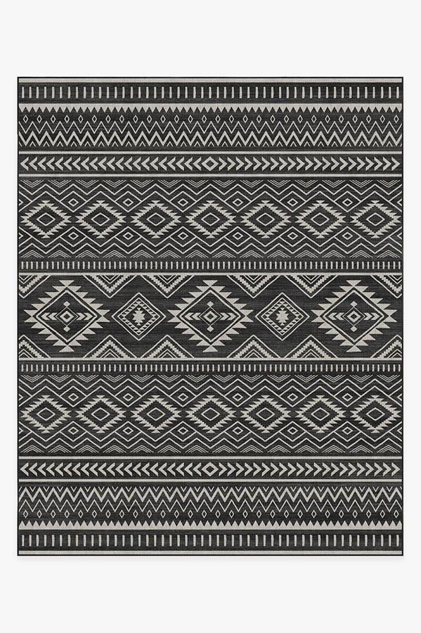 Arizona Black Rug is at once timeless and sophisticated, celebrating the art of the American Southwest. Featuring diamonds and stripes and tinted in high-contrast tones of smoke black and bone white, this tribal-inspired rug lends an energetic feel to any space.