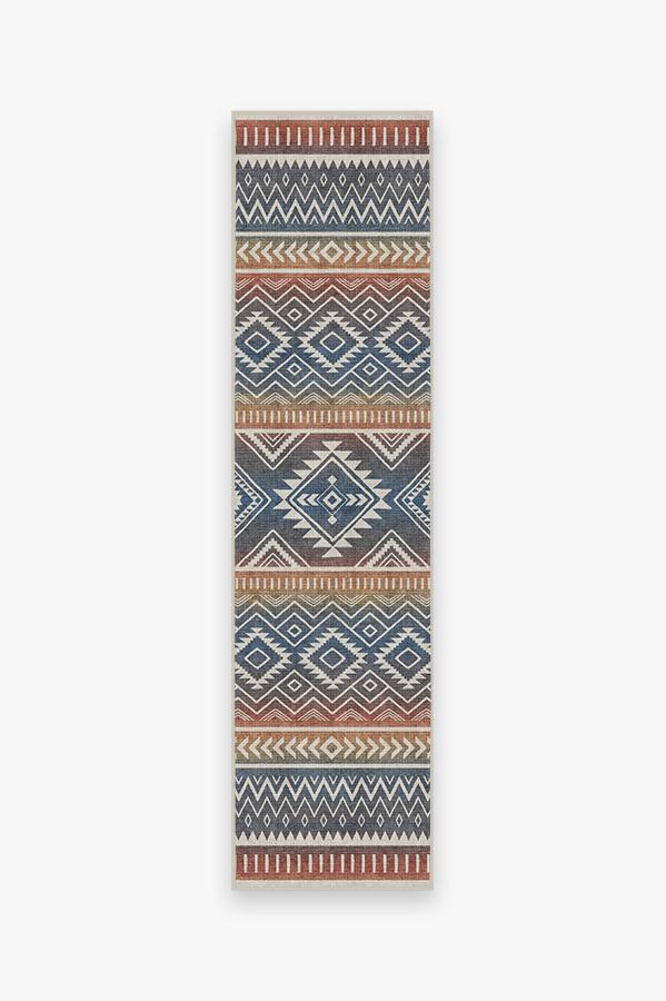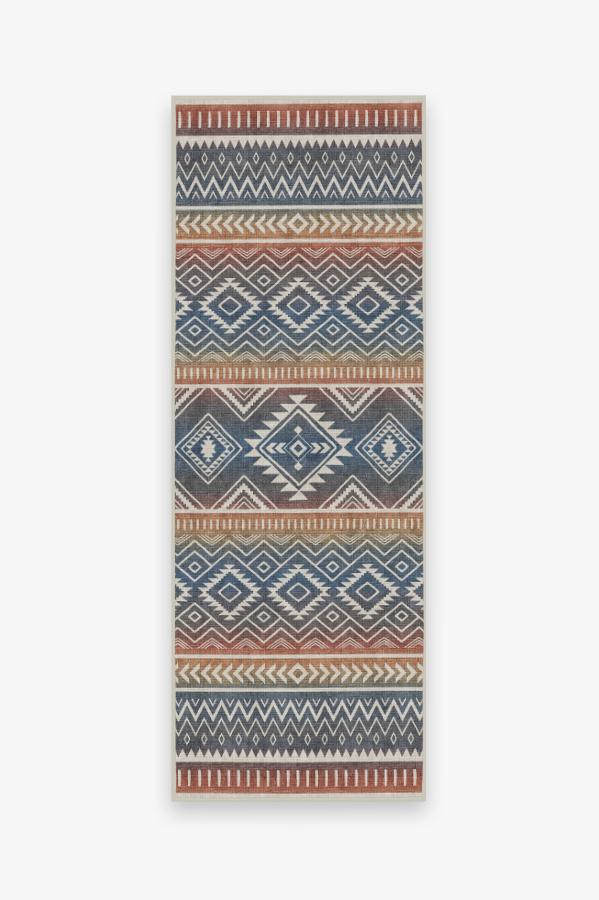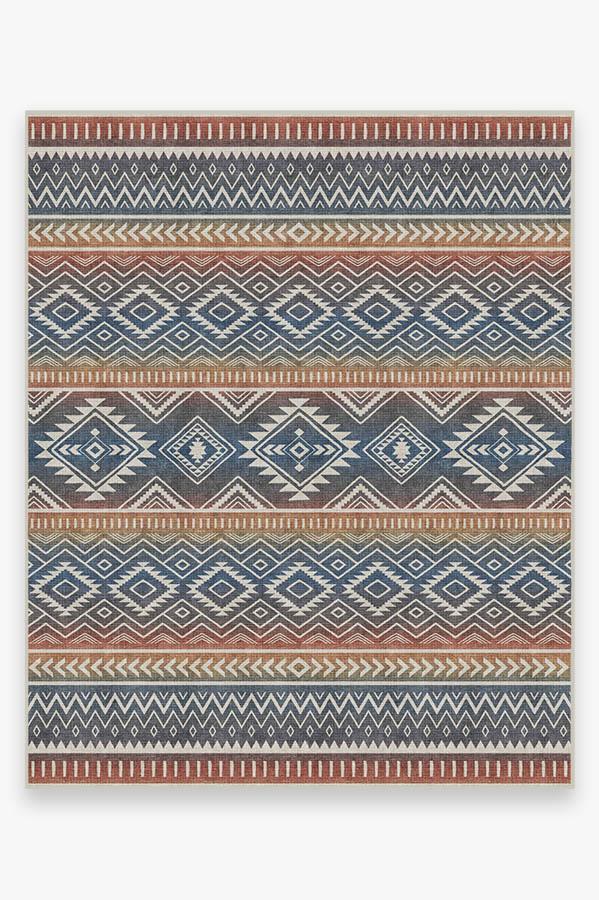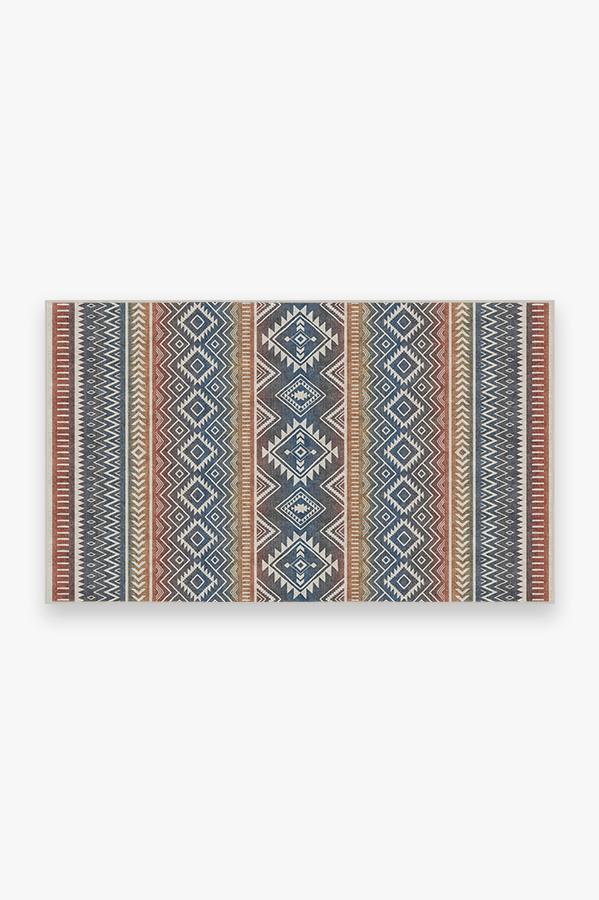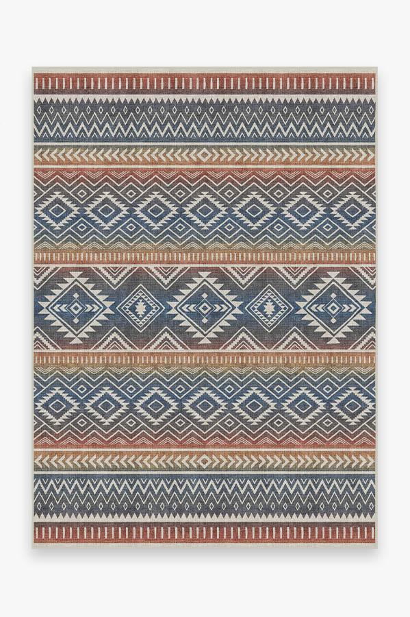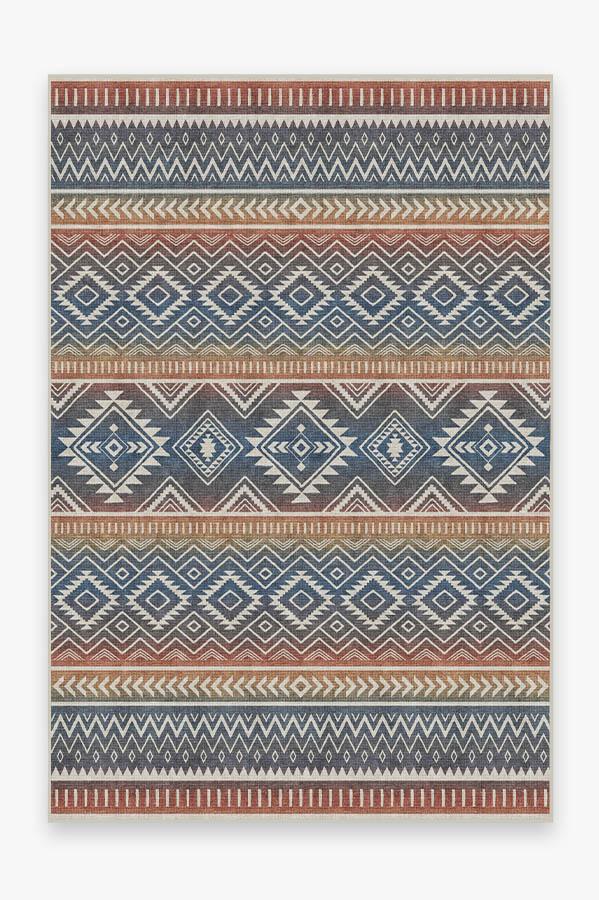 Inspired by the iconic tribal designs of the American Southwest, our Arizona Polychrome Rug features recurring rows of diamonds and stripes in attention-grabbing colors of slate blue, dijon yellow, and gala red.