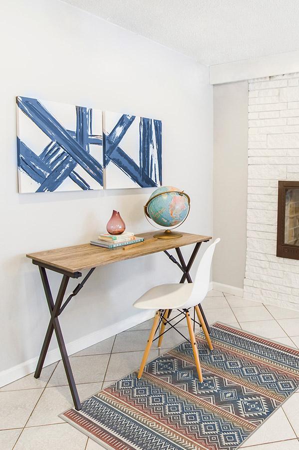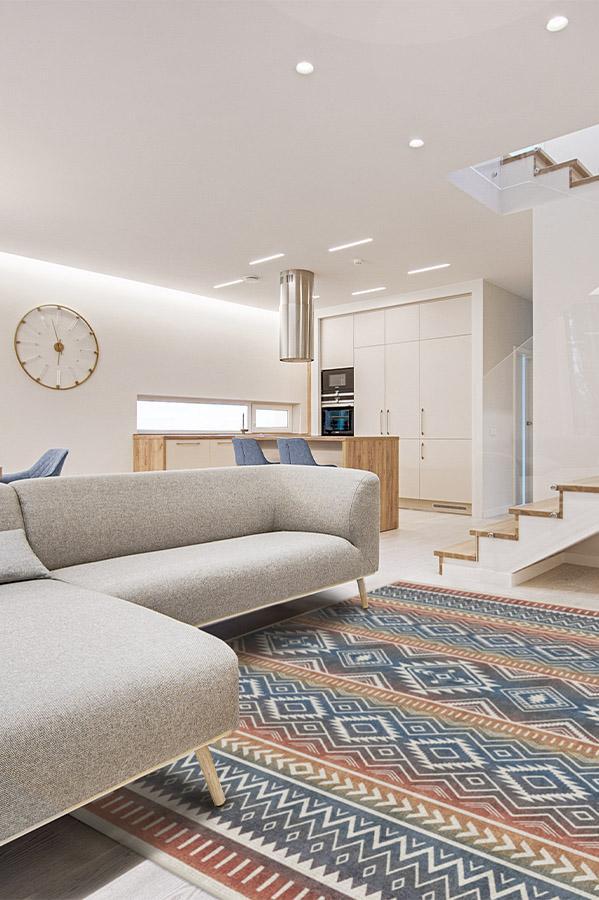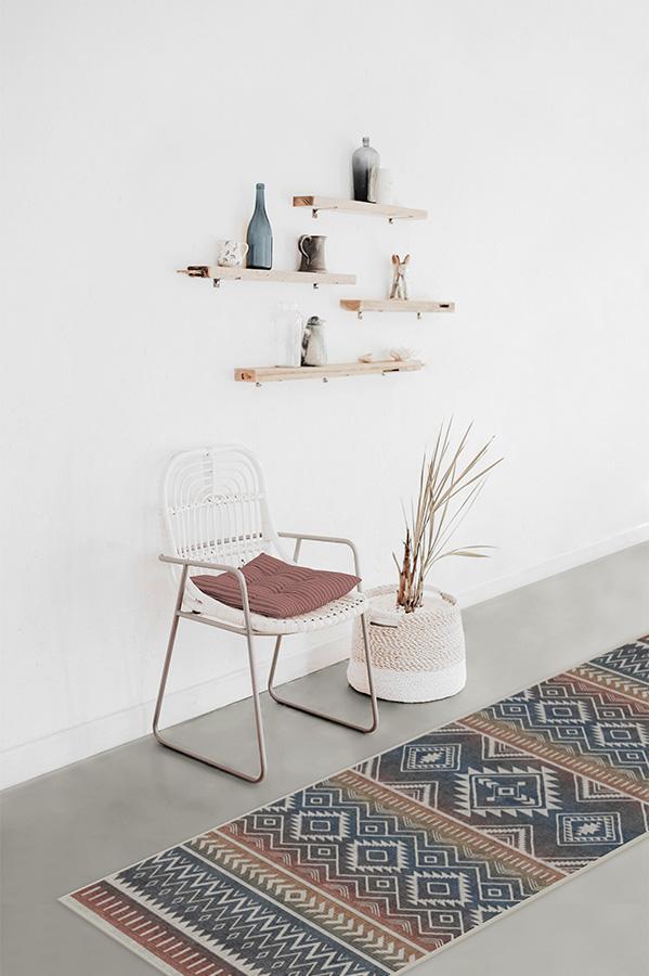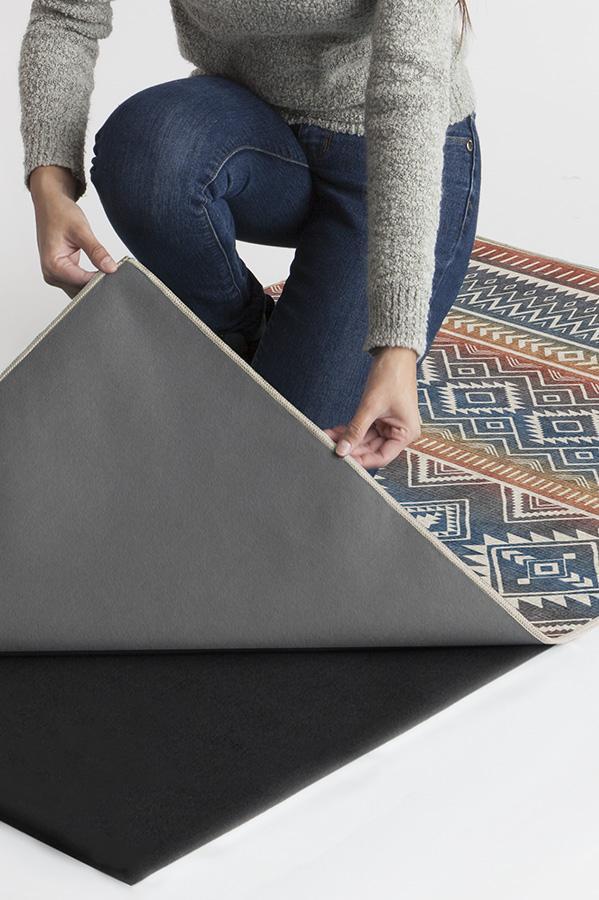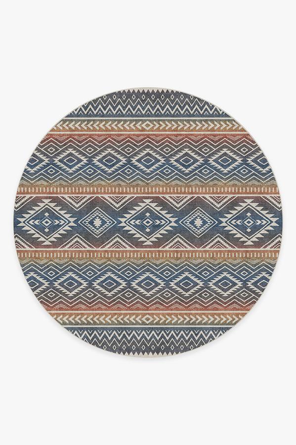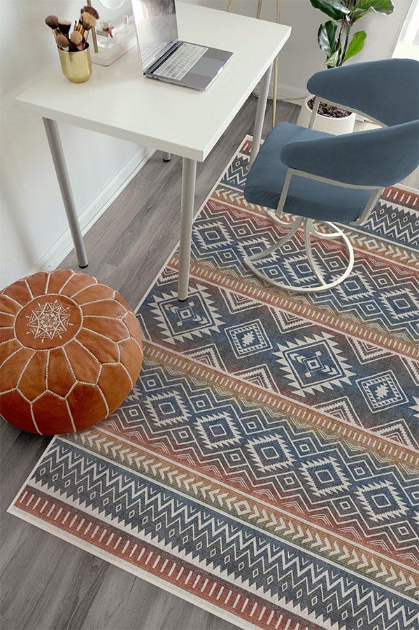 Inspired by the iconic tribal designs of the American Southwest, our Arizona Polychrome Rug features recurring rows of diamonds and stripes in attention-grabbing colors of slate blue, dijon yellow, and gala red.