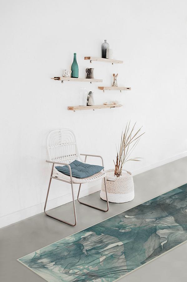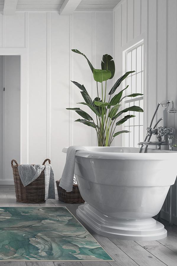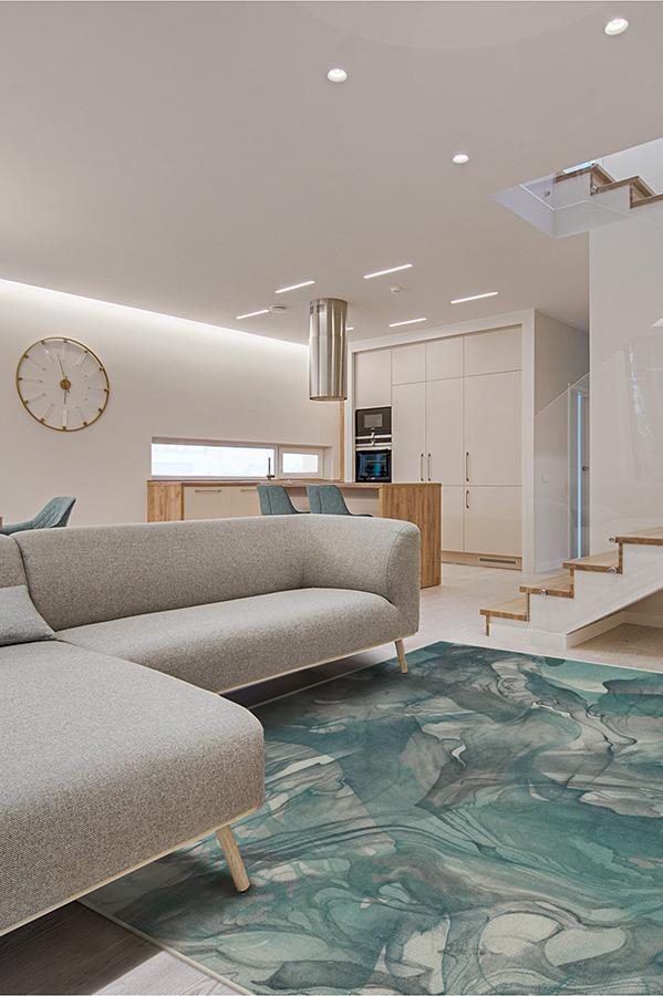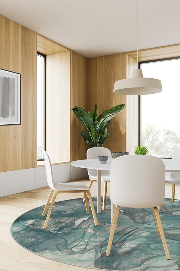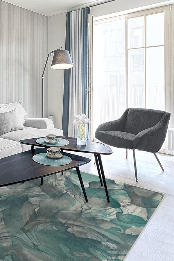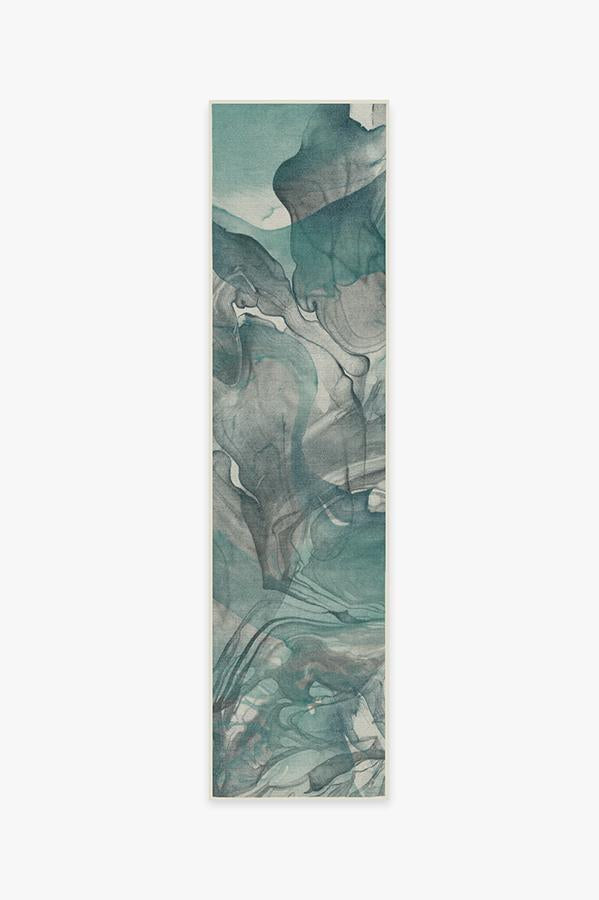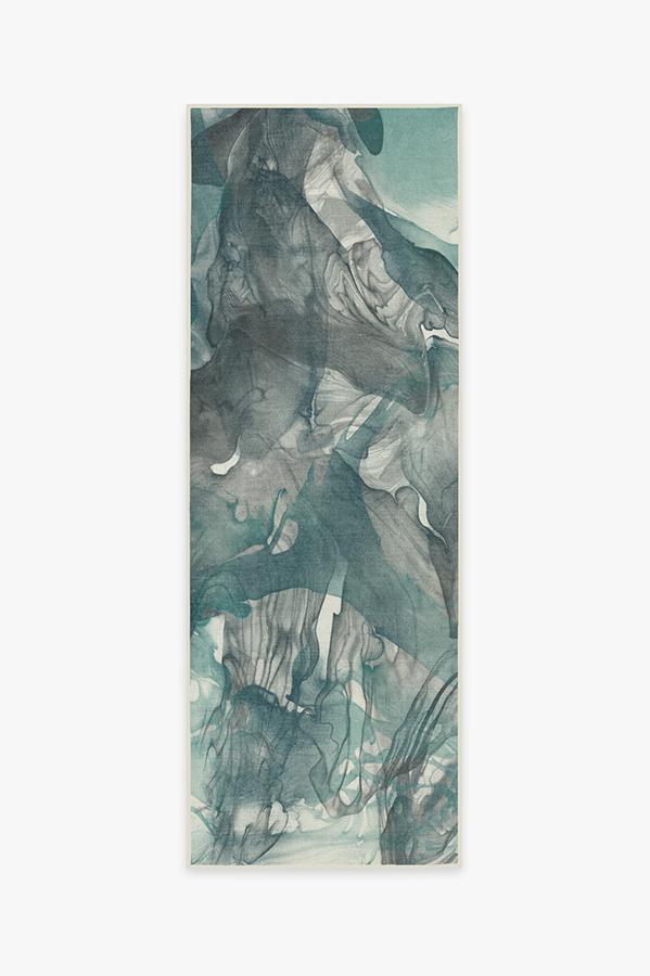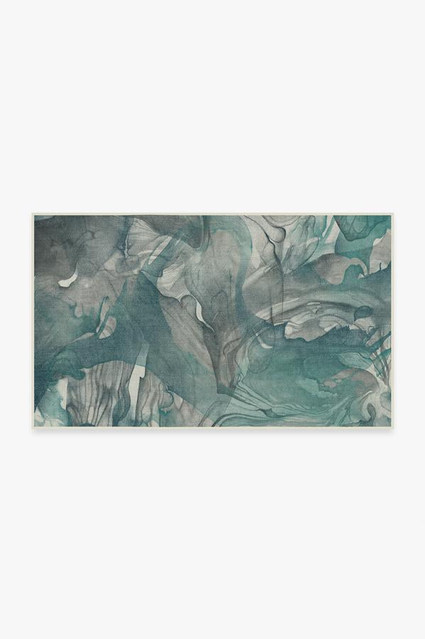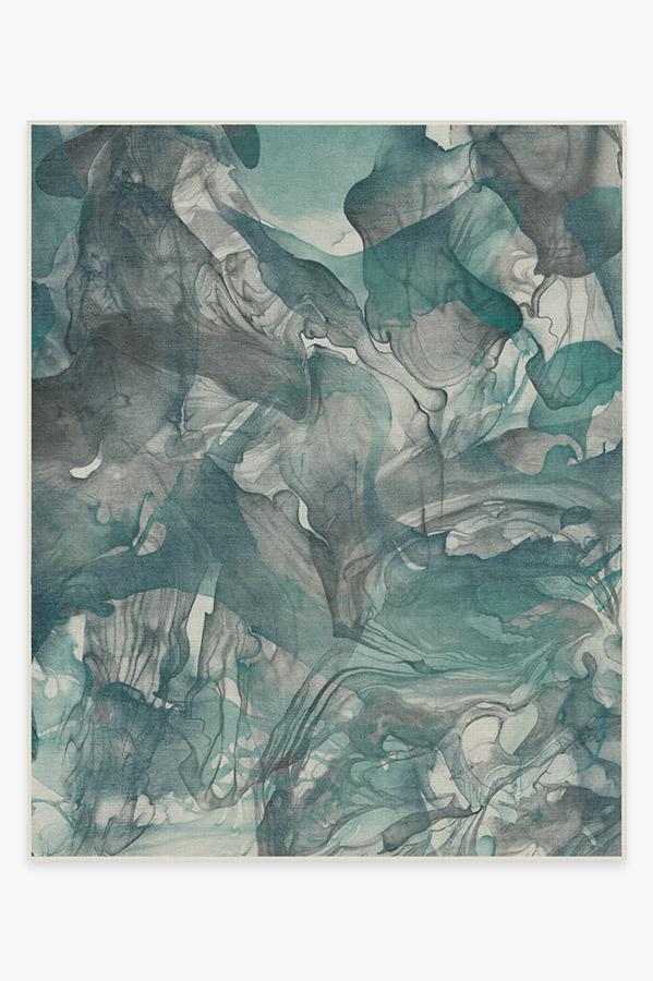 The Aurora Teal Grey Rug captures the ethereal nature of the northern lights. Watercolor swirls of teal blue, grey, and light cream create a stunning abstract design to modernize any room in your home.