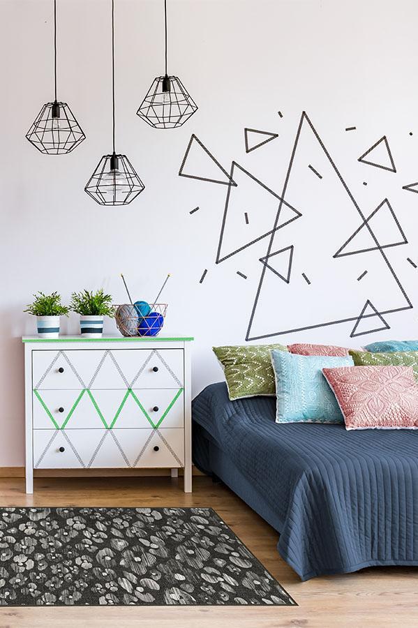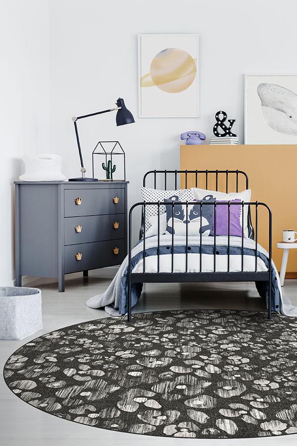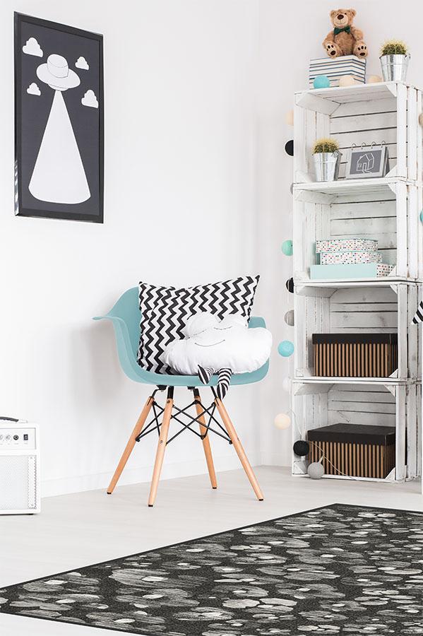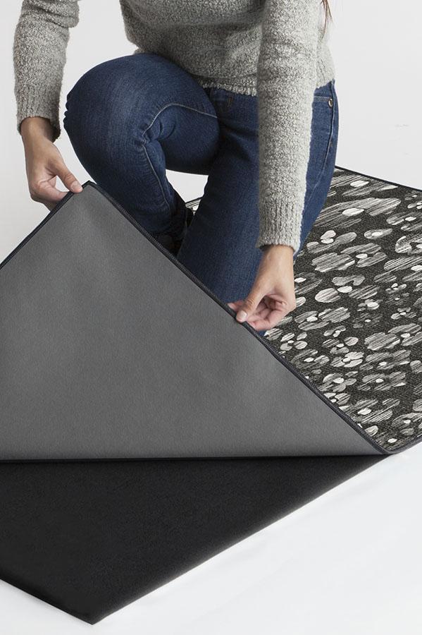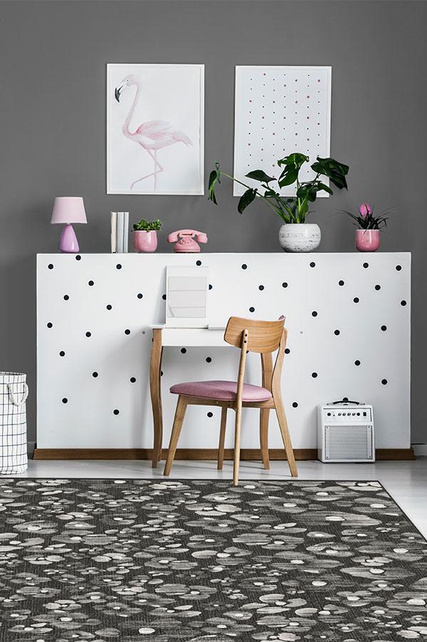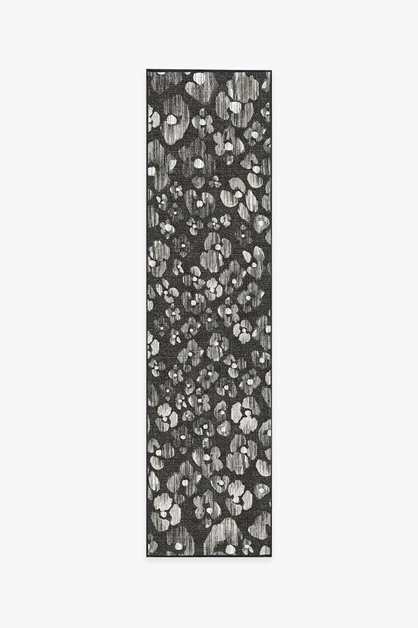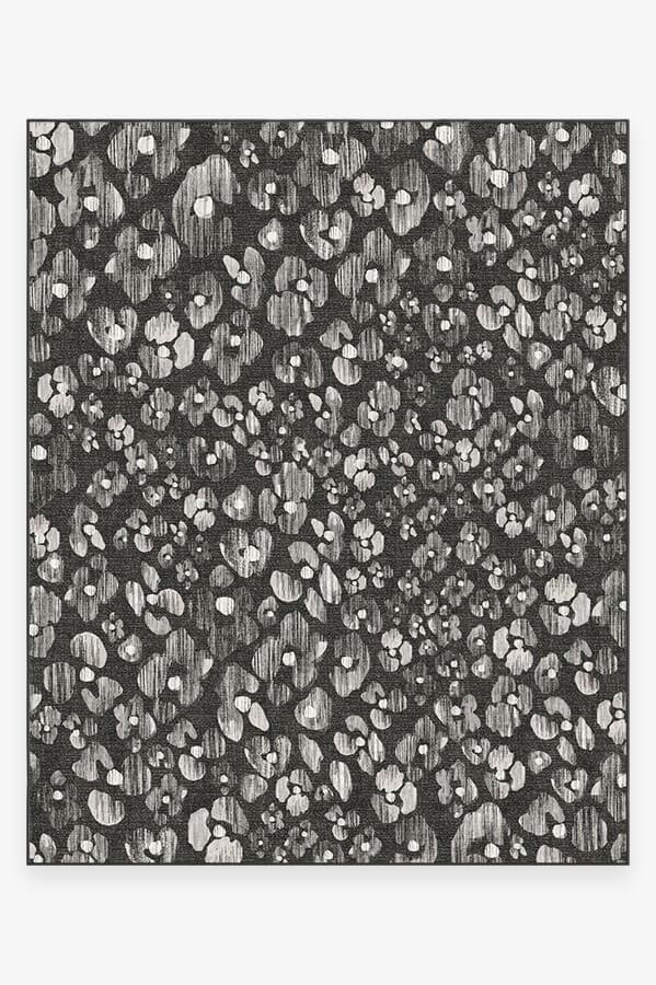 This contemporary Ayana Charcoal rug displays a field of beautifully striated flowers in varying shades of grey and white.