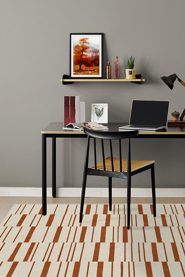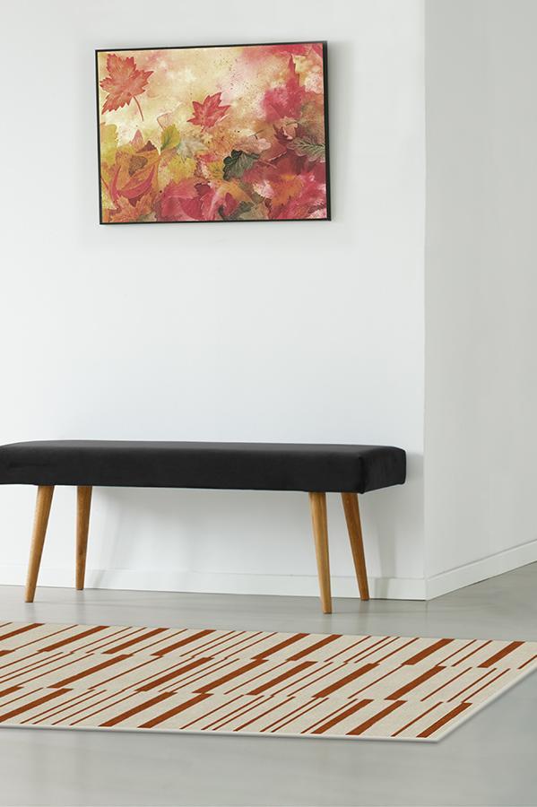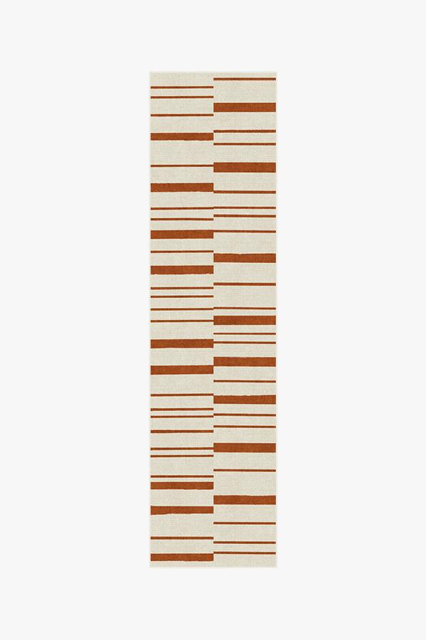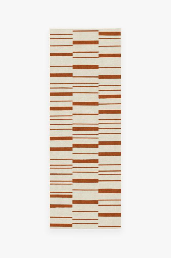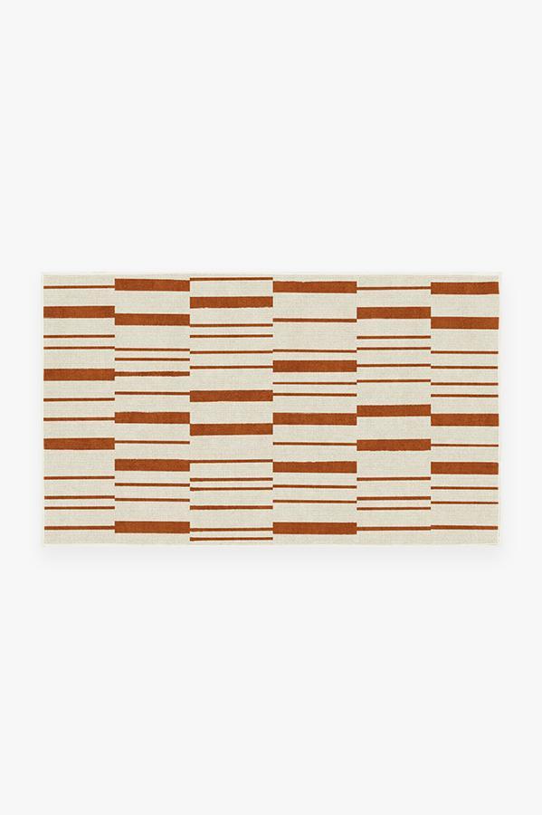 Broken Stripe Rust Orange Rug blends the warm colors of fall with a smart take on the classic stripe motif. This simple and modern design is showcased in autumn hues of orange and pearl to bring a welcoming seasonal vibe to your home.