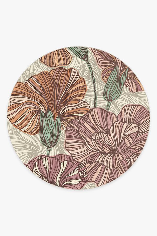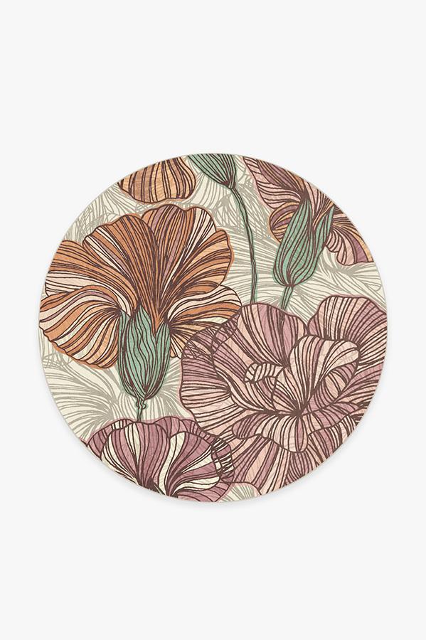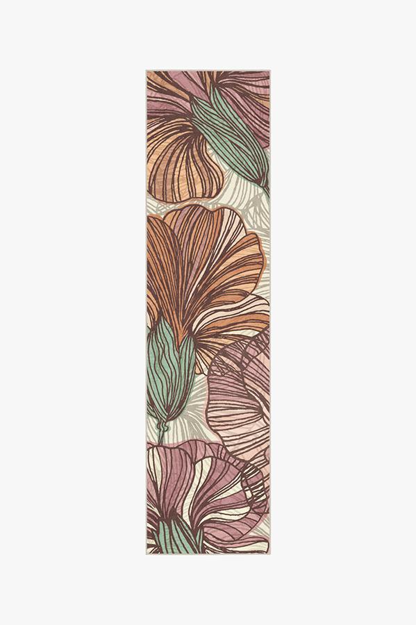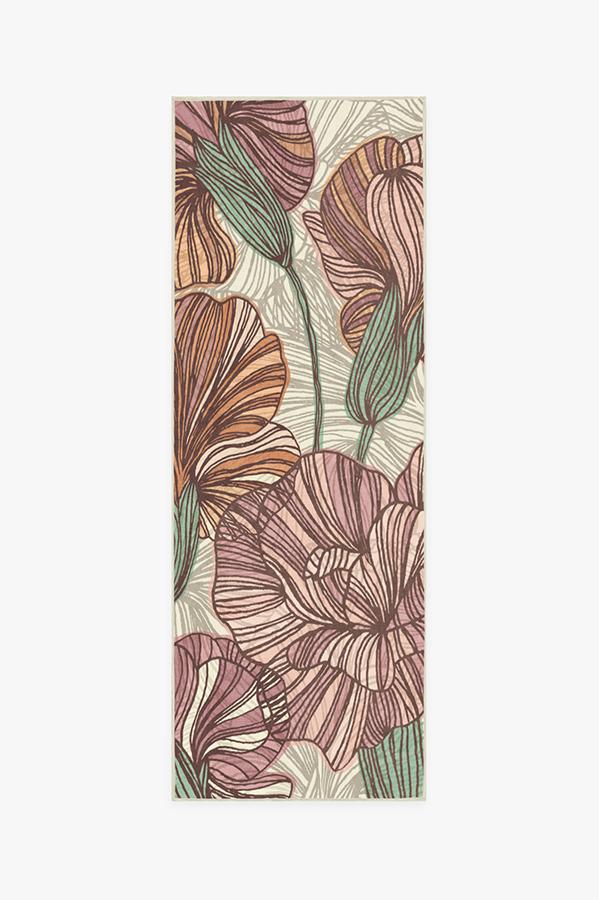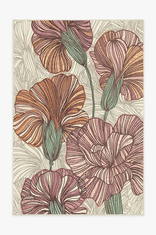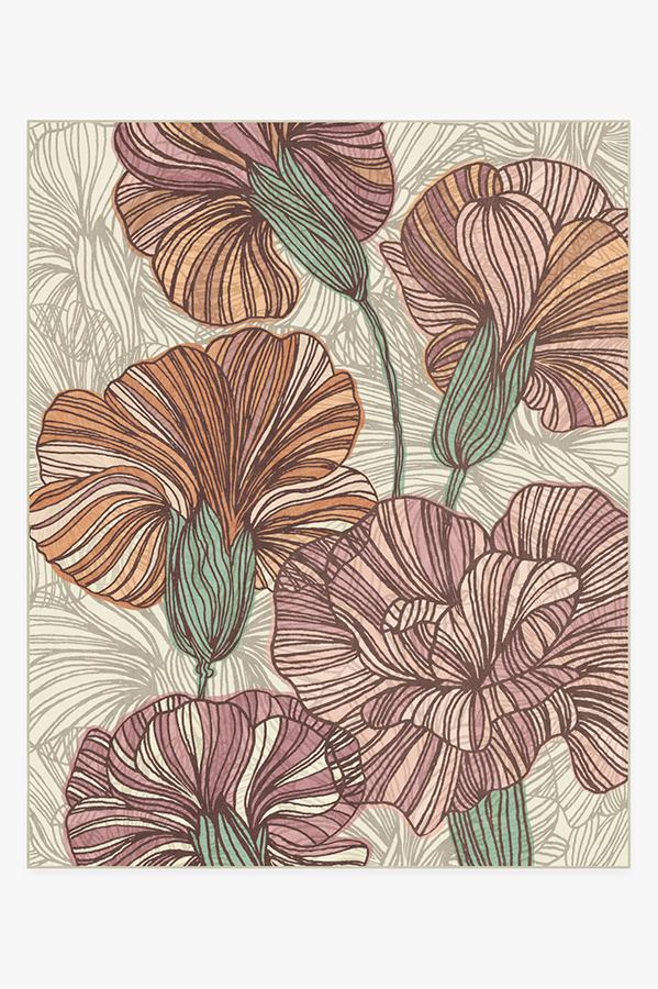 Our vintage-style Carnation Blush rug enjoys an elegant line work motif in lively hues of pink and orange with touches of green.