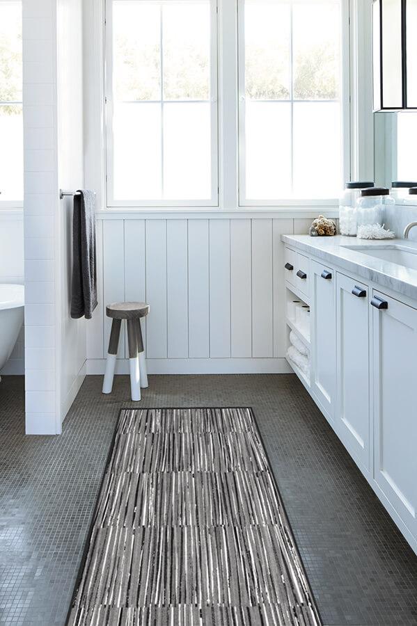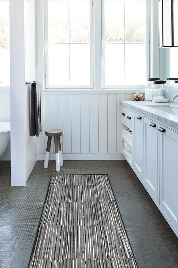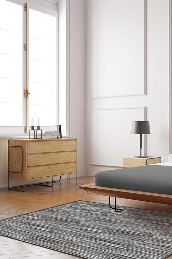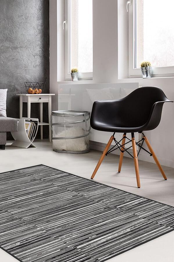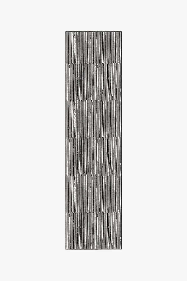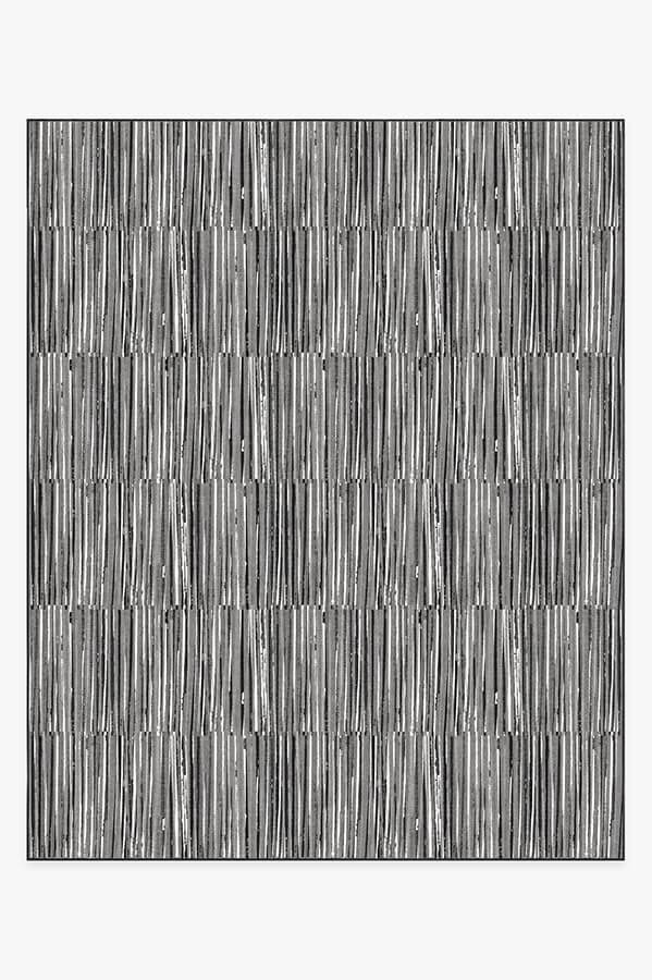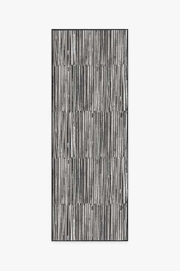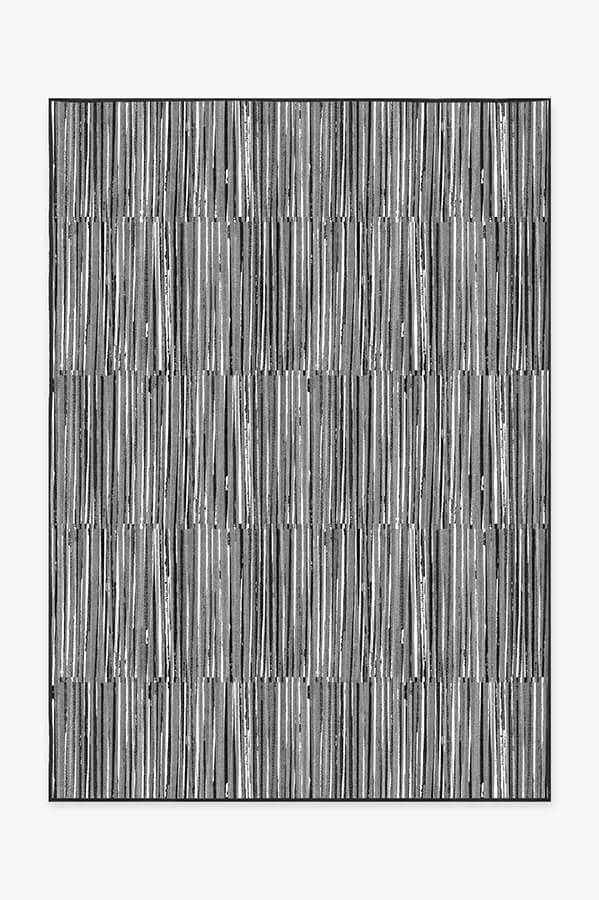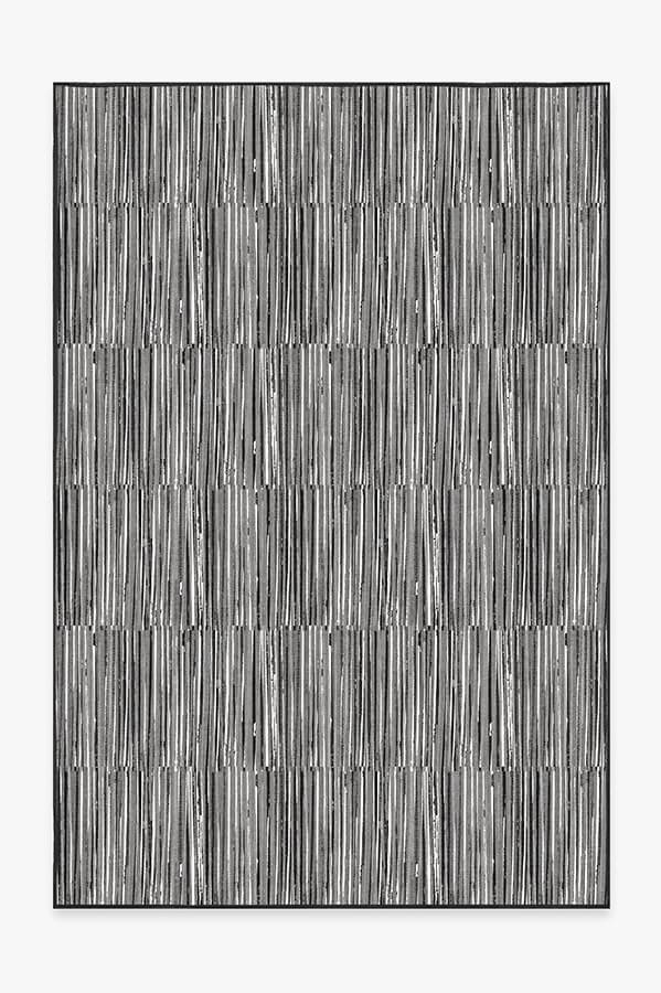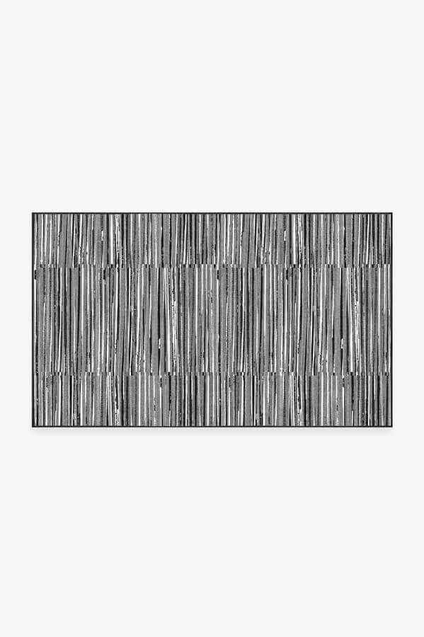 Our Caspian Stripe Black rug features a myriad of hand-drawn overlapping lines in neutral grey and white to create a subtle fringe texture.