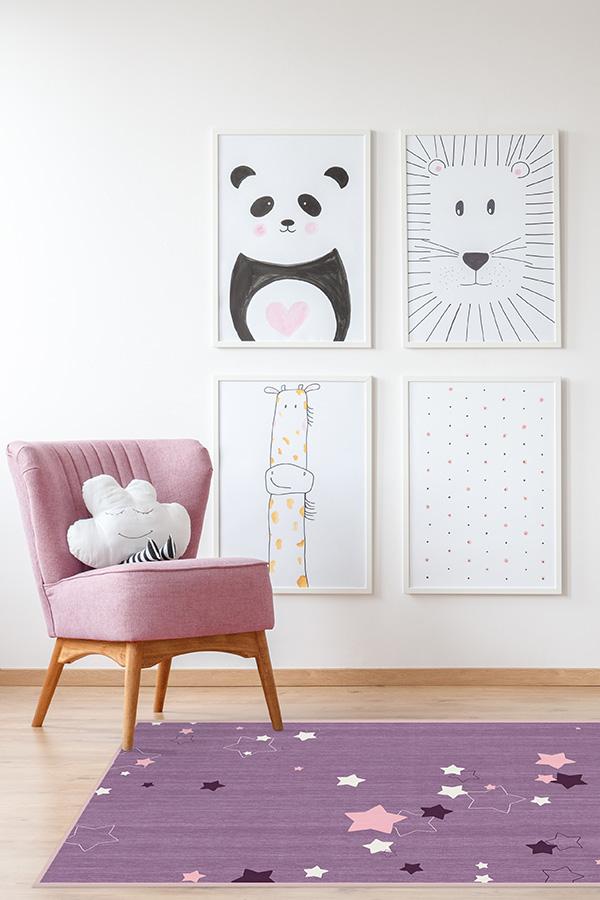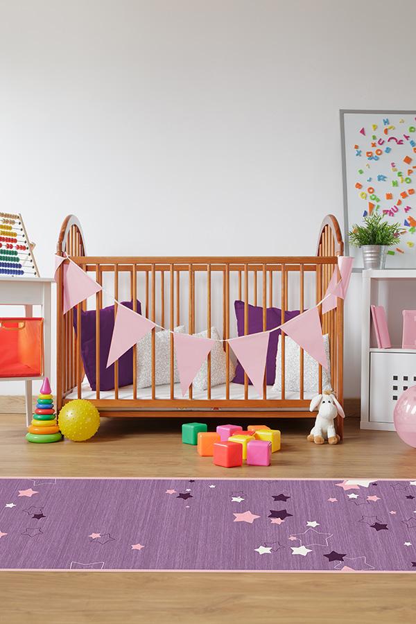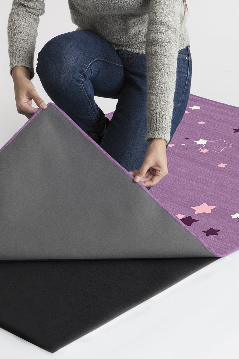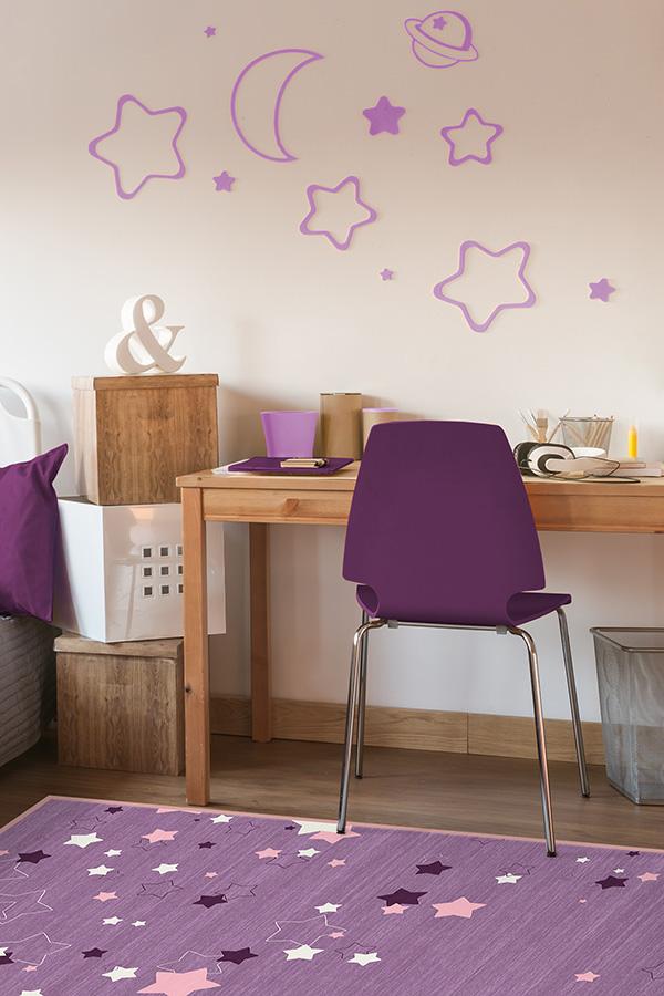Our Constellation Lavender Rug is a stellar decorative area rug that will be the star of your child's room. The majestic mix of lavender, concord grape, ivory, and cotton candy pink plays up the sprinkling of stars motif which will instantly add fun and visual sparkle to any kid decor style.