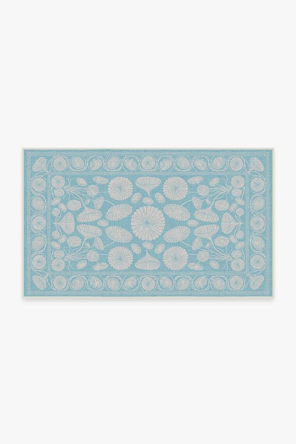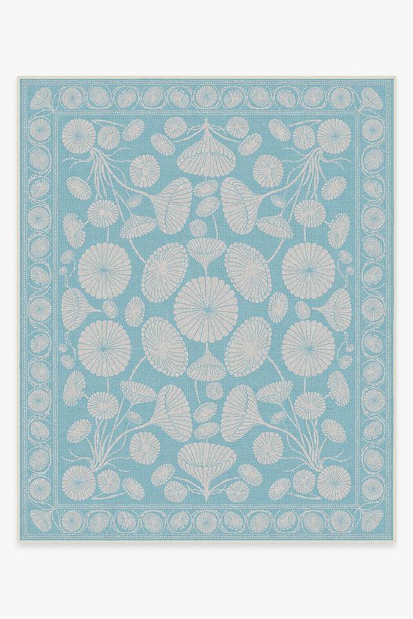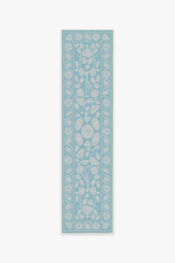 Cynthia Rowley Suzani Powder Blue Rug brings a dainty touch to your home. Tinted in soothing hues of pearl and baby blue, this suzani rug-inspired design features a mix of large and small floral blooms, connected by stems and surrounded by a beautiful floral border for a subtle yet standout look.
