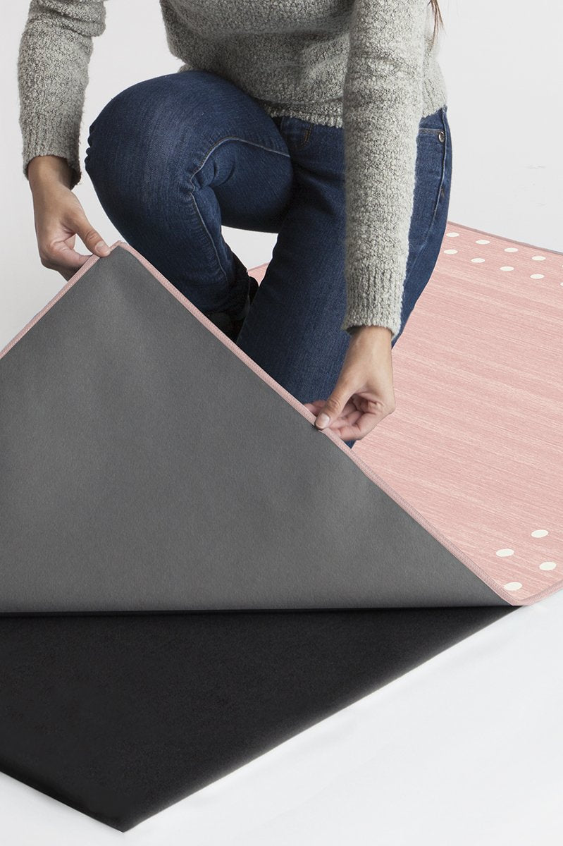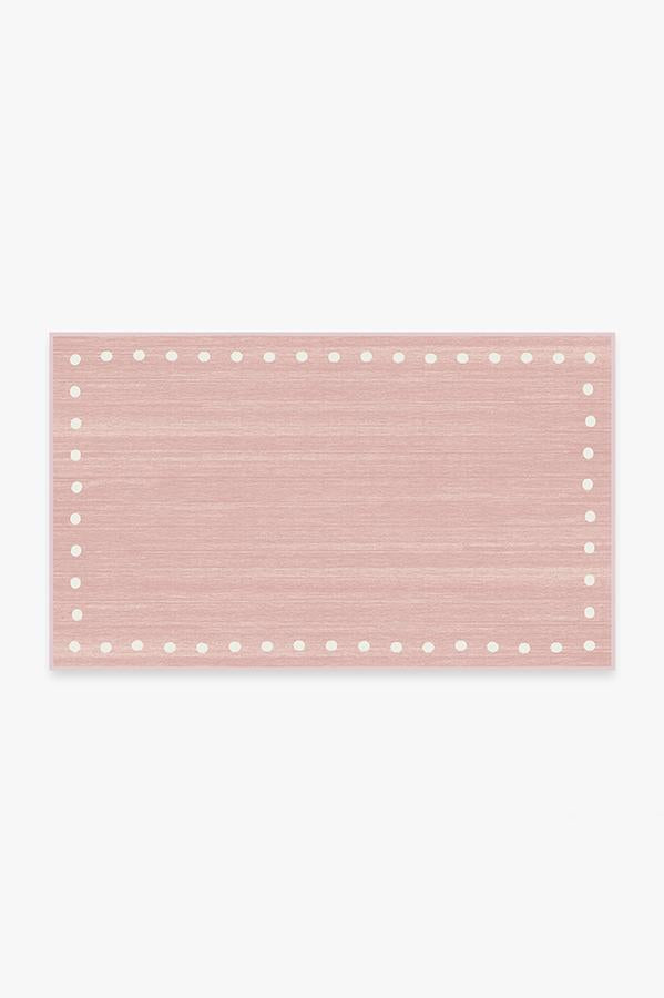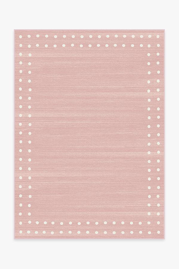 Create subtle sophistication for your child's space with our Dot Border Pink rug. Its subdued pastel pink with pearl polkadotted design will go well with a wide range of furniture styles for a bedroom, playroom or study area. This desing is perfectly suitable for kids from toddlers to tweens.
