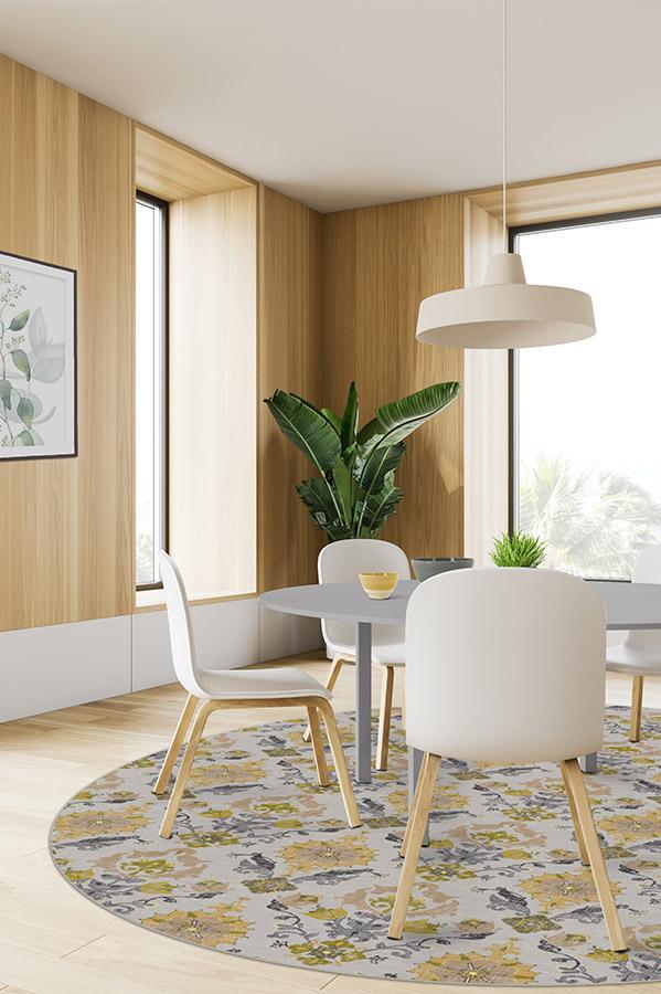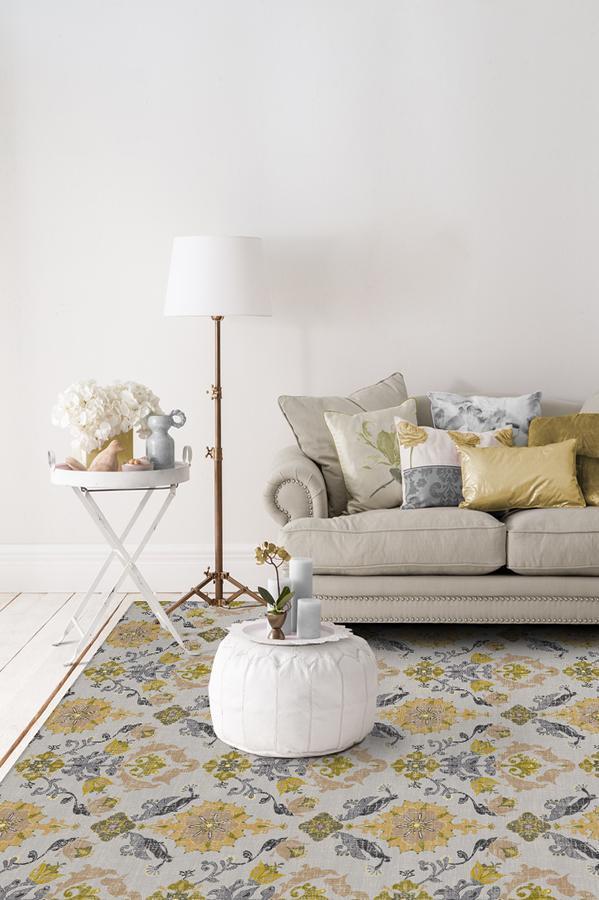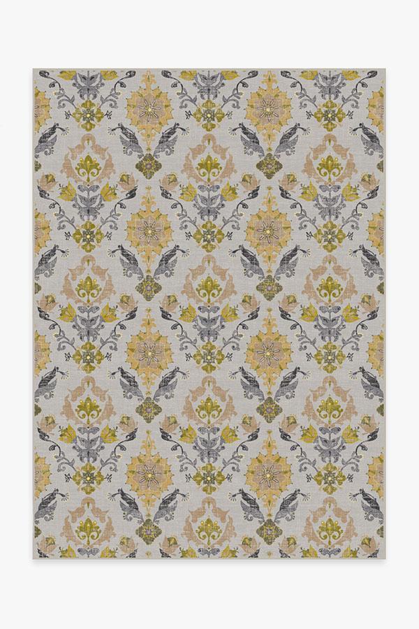 Bring a touch of nature to your home with our Floral Damask Mimi Yellow rug. The subtle, multi-colored mix of silver, moonsand, gold, olive green, and yellow features a unique wildflower-patterned motif that's both regal and elegant. Perfect for decorating styles from shabby chic to classic, to country or traditional.