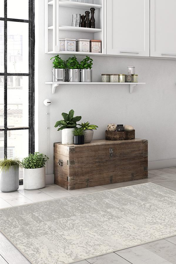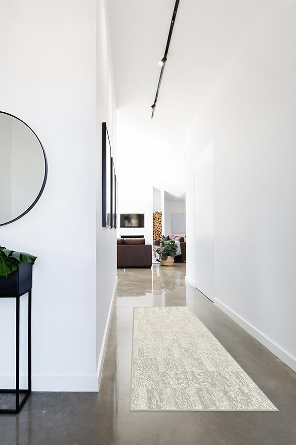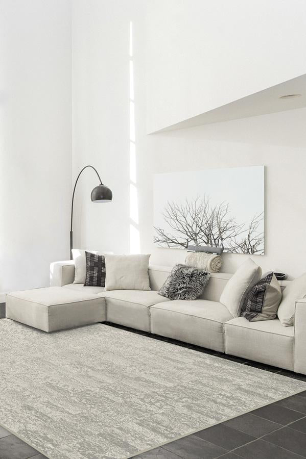 This stunning Granite Ombre Light Grey rug beautifully blends pearl and dove grey hues with a mimicking motif of granite quartz that will easily complement an array of colors in your home.