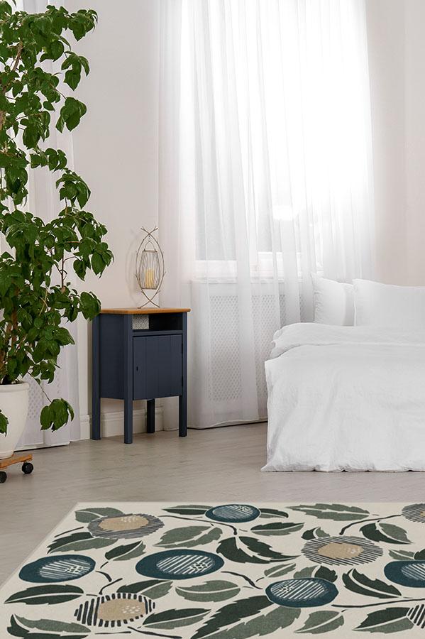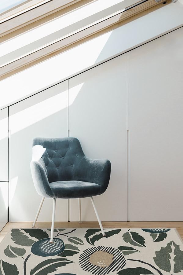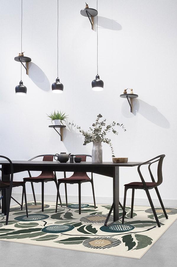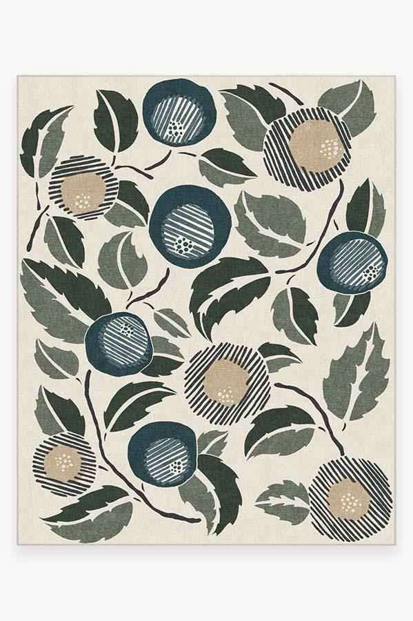 Our modern-retro Hana Jade rug uses hand-drawn linework to create this unique floral motif in a variety of soft green hues and a hint of gold.