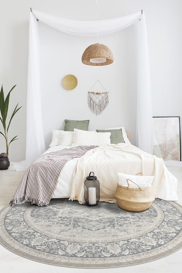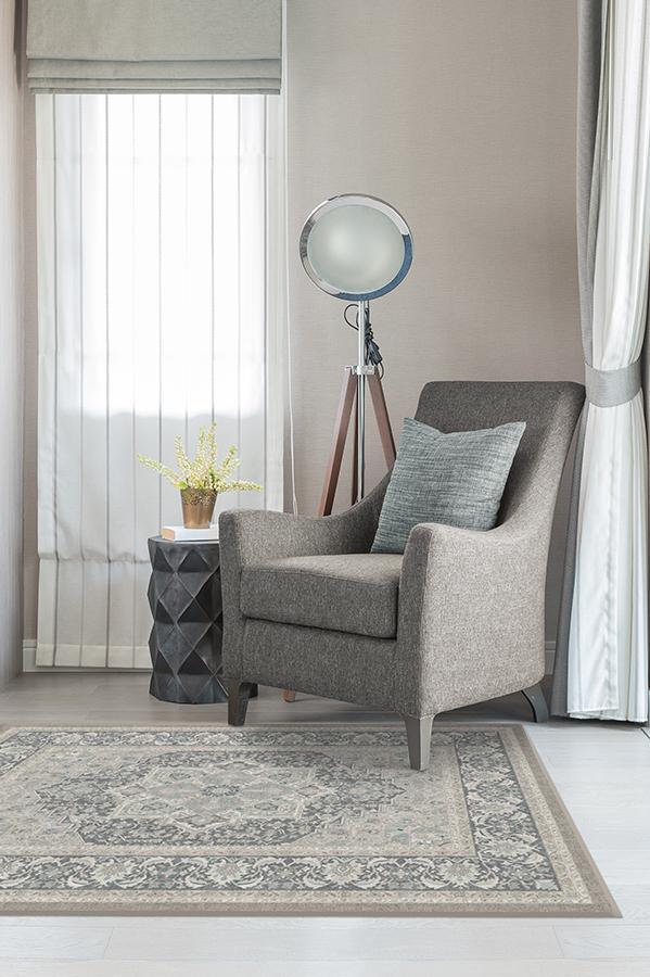 The Hendesi Heriz Abalone Rug is a classic Persian-style rug that features an oversized medallion in the center surrounded by ornate borders. Tinted in neutral colors, this sophisticated rug will elevate any room in your home.