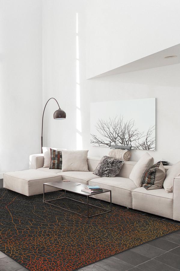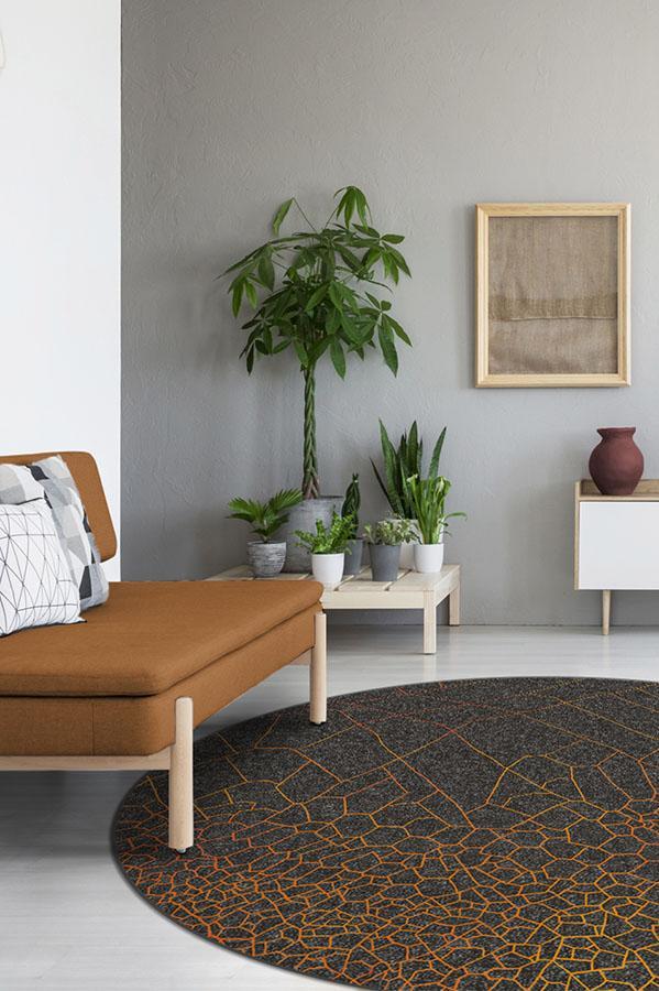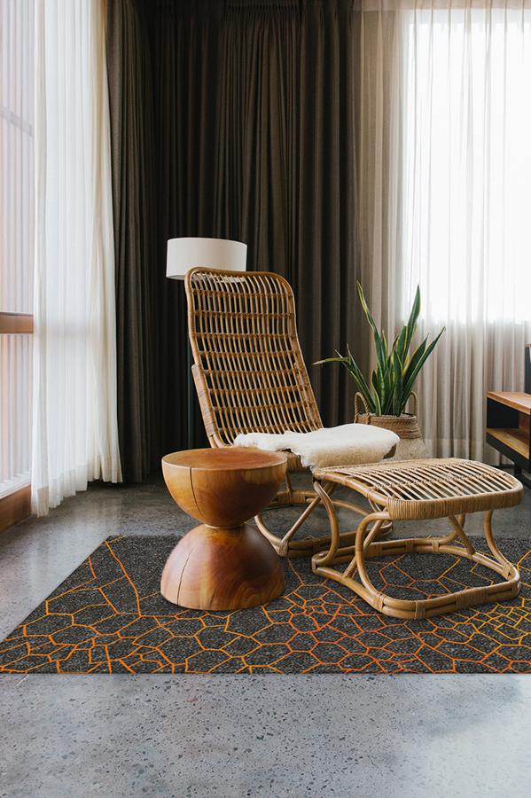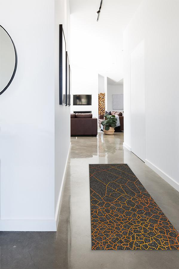 Layer your home's interior decor with energetic geometric design by adding our Kella Sunburst floor covering. Fine, graphic lines are colored in a gradient sunburst of rust red, rust orange and Danish yellow over a background of neutral greys. This unique decorative piece will create interest and visual texture to any modern, contemporary, or mid-century modern space.