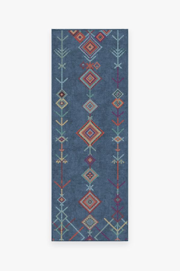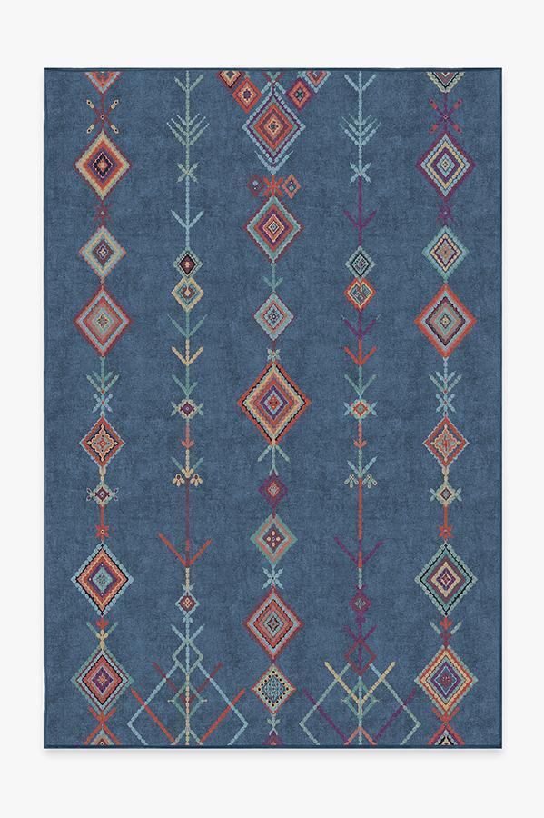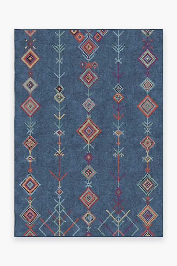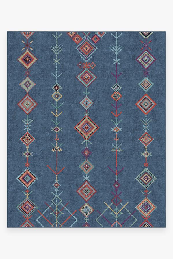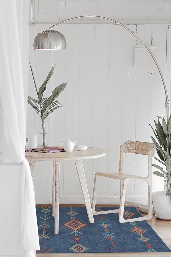 Uplift your interior decor with our Moroccan style Kenza Ocean Blue rug. The geometric flair of this diamond and arrow, tribal motif enjoys a technicolor palette of garnet, seafoam blue, dark turquoise, Danish yellow and eggplant. Roll out this charming decorative accent for a lively update in any modern, contemporary, or eclectic style home.
