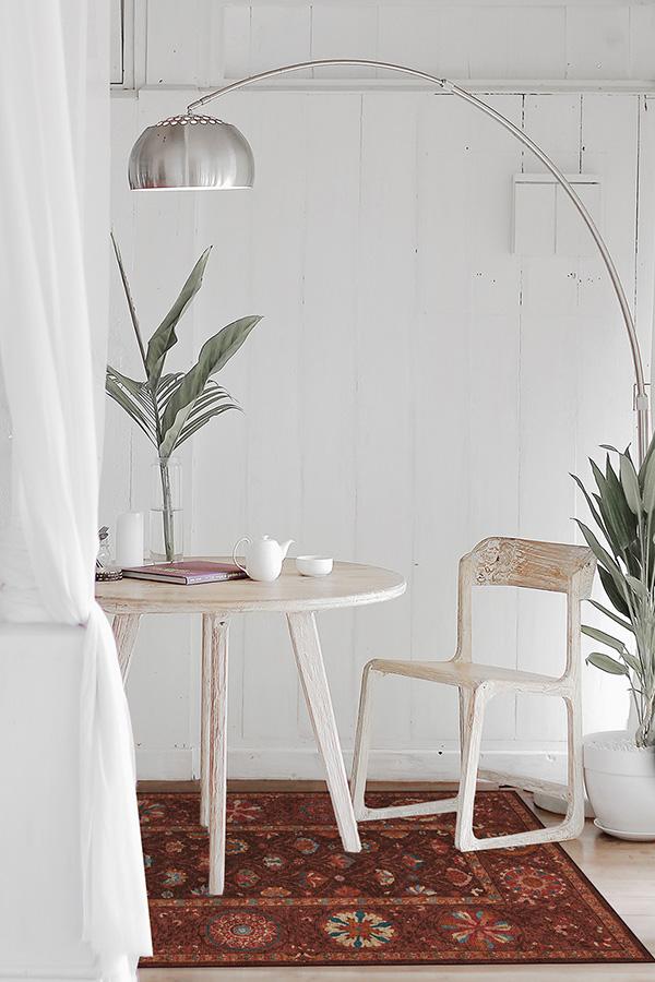 Greet the changing of seasons with refined, colorful elegance by adding our Latiff Autumn rug. This distinctive Persian-style motif features a band of floral medallions, surrounding a field of fanned florets that are colored in happy hues of brick red, summer orange, sea blue and bittersweet chocolate. Grace your floors with this spectacular accent piece in any contemporary, classic or eclectic style interior.