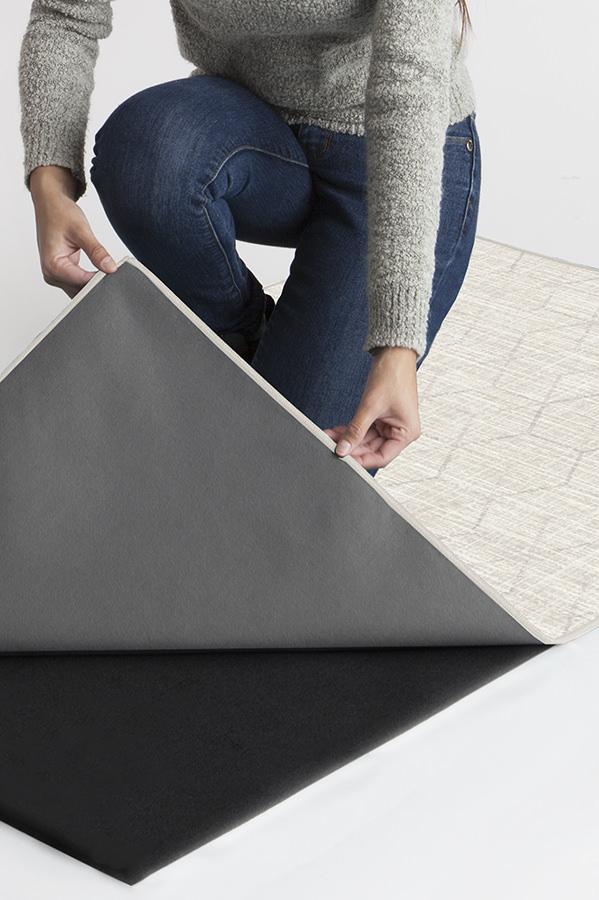 The Prisma Monochrome patterns an overlapping hexagonal motif over a neutral cream background.